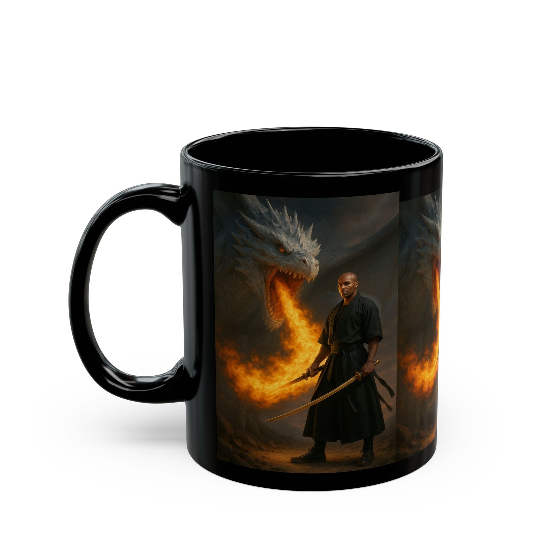 Dragon Warrior Black Mug - Fantasy Theme, Unique Gift for Gamers, Coffee Lovers, Dungeons & Dragons, Home Decor, 11oz & 15oz